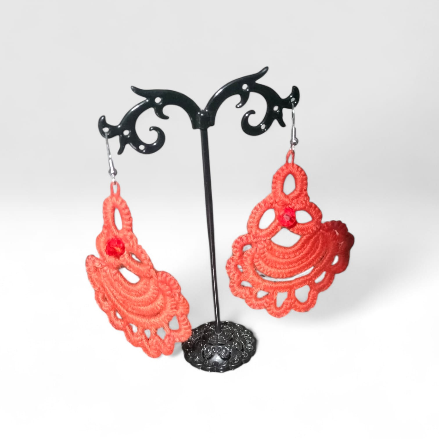 Cercei lucrati manual, cu tehnica dantelei Frivolite.