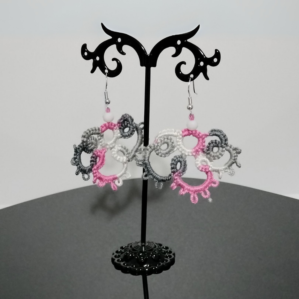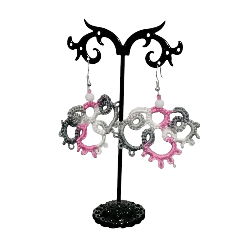 Cercei lucrati manual, cu tehnica dantelei Frivolite.